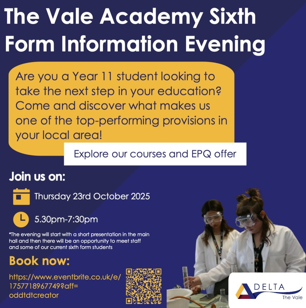 Sixth Form Open Evening Join us on Thursday 23rd October for our Sixth Form Open Evening. Book via Eventbrite